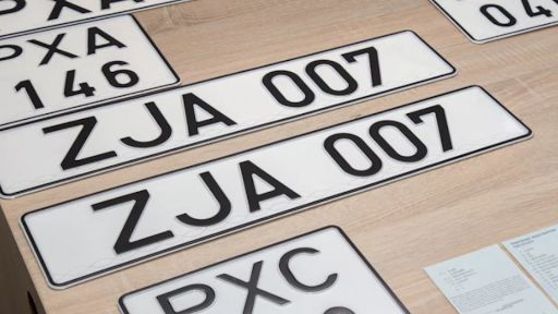 Номера шестизначные первая буква номера обозначает регион регистрации, две буквы в конце серия номеров. Фон номерных знаков белый. Надпись выполняется черным цветом.