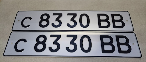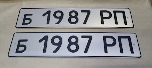 Буквы и цифры на номере окрашиваются также краской черного цвета. Такая технология изготовления считается более затратной и занимает больше время на изготовления, примерно 1-2 дня в отличии от современного производства номеров.